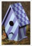 Checks and stripes add a whimsical touch to this inexpensive wooden birdhouse, perfect for any garden room.