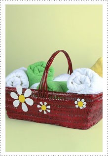 - Using image as guide, position painted wood piece into flower shapes and secure to basket with glue. Allow glue to dry.