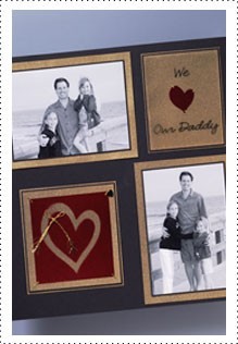 - Computer journal onto a transparency. Sew on small heart with gold fiber. Mat with Gold Make It Stone!® cardstock, black cardstock, and then Gold Make It Stone!® cardstock. Adhere to layout.