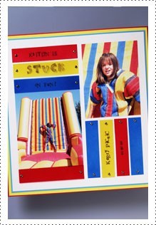 - Trim down white cardstock and mat onto blue, yellow and red cardstock to create background.