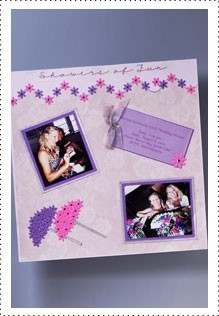 | Punched paper flowers, glitter spray, and rhinestones add a sparkling feminine touch to any shower layout. | ![]() |
