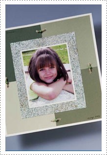 - Spray photo with Preserve It! and let dry. Adhere photo to center of layout. Cut 1" strips of stone painted cardstock and place around photo to frame it; miter corners.