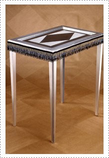 - Create a design for the glass top (like the diamond pattern in the photo). Clean glass on both sides and dry with a lint free cloth. You will be painting both sides of the glass. Looking Glass will be used on the reverse-side of the glass (the side that faces down), and Frosted Glass Finish will be used on the top of the glass (the side that faces up).