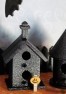 These unfinished birdhouses have Gothic features that easily transform into a sparkly haunted village with some help from Krylon Glitter Blast paint.